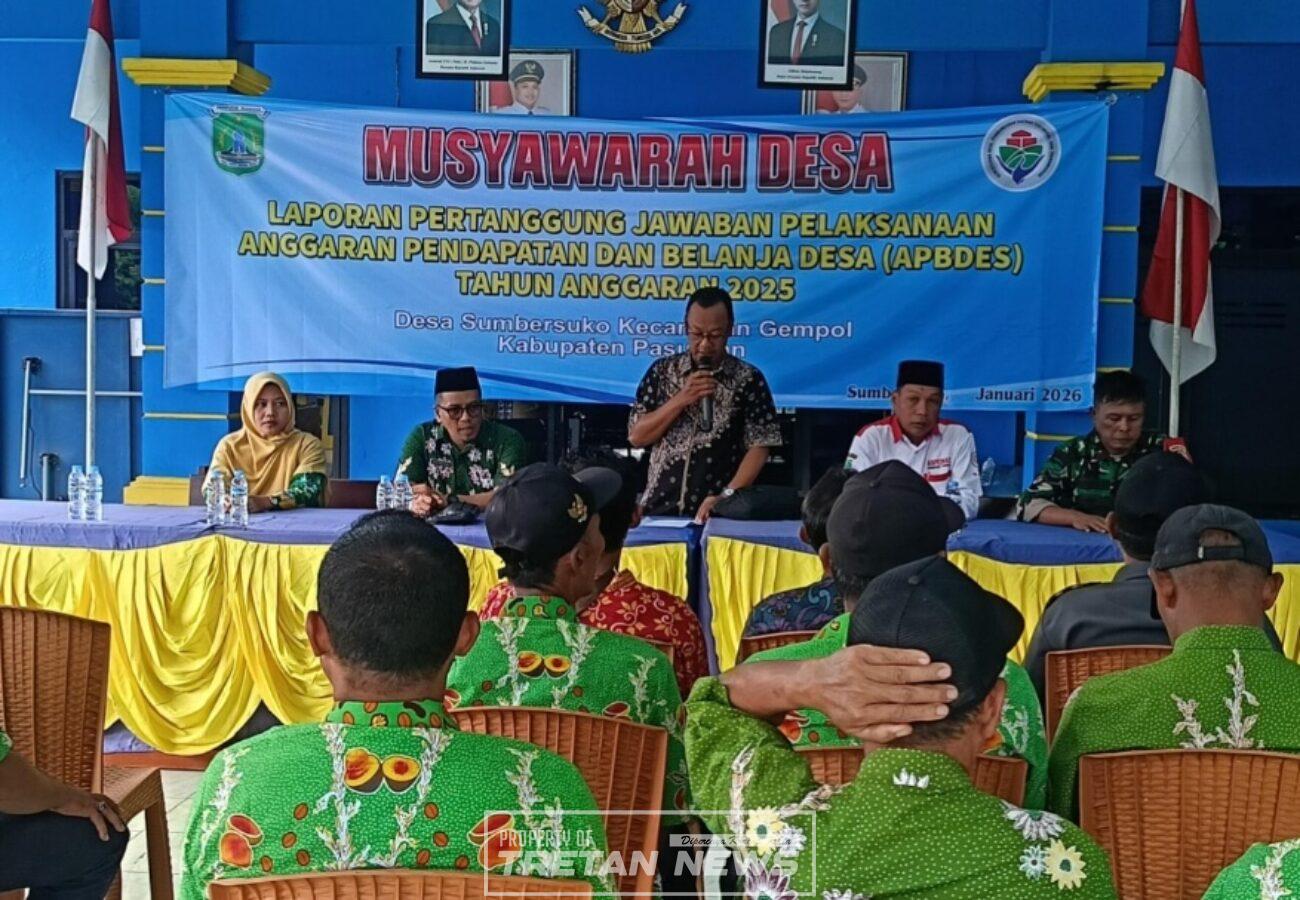 PASURUAN, tretan.news – Pemerintah Desa Sumbersuko, Kecamatan Gempol, Kabupaten Pasuruan menuntaskan Laporan
