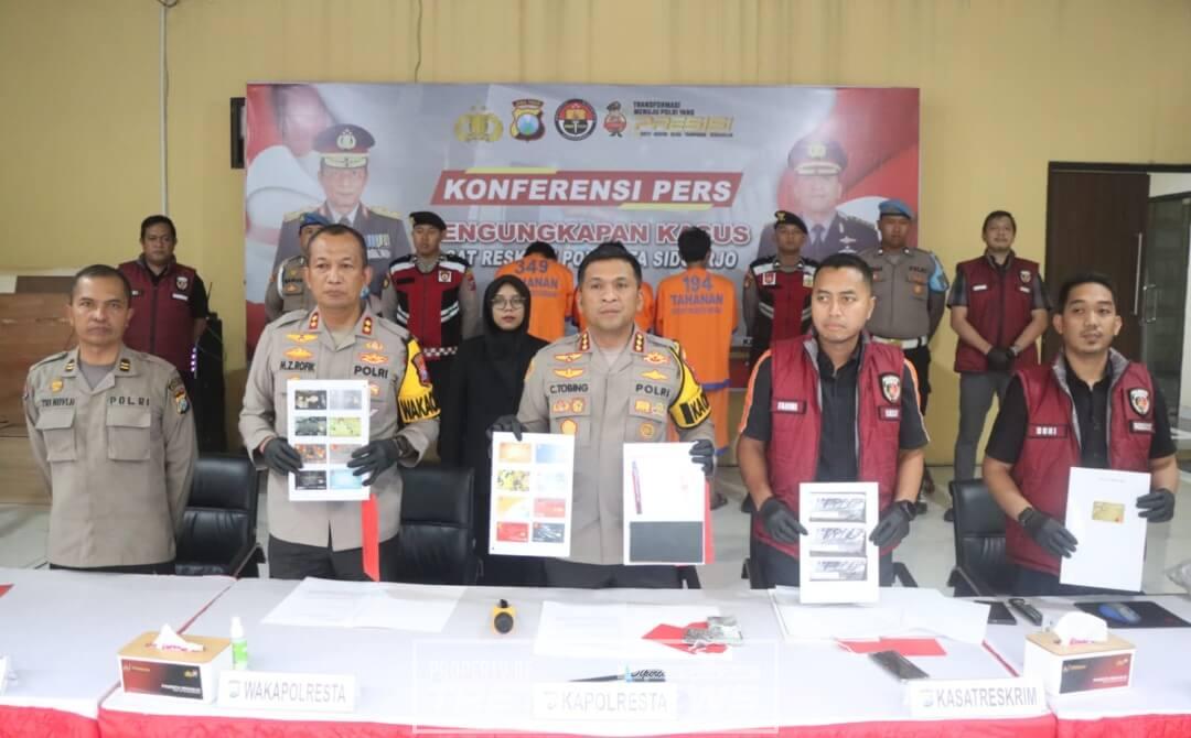 SIDOARJO, Tretan.News – Tindak pidana pencurian dengan pemberatan modus ganjal mesin ATM senilai Rp. 135 juta, berhasil diungkap Satreskrim Polresta Sidoarjo. Ada tiga orang tersangka yang berhasil diringkus dan tiga orang lagi masuk dalam Daftar Pencarian Orang (DPO) polisi.