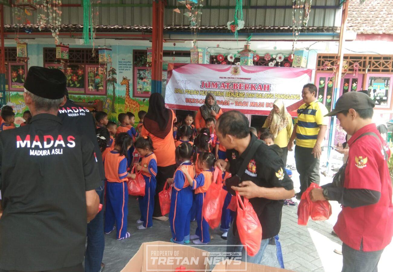 Gresik, tretan.news -Madas DPAC benjeng secara aktif menyatakan dukungan mereka terhadap program makanan bergizi gratis yang di gegas pemerintah dengan itu MADAS DPAC benjeng sekarang mempunyai inisiatif baru dengan berbagi sosial jumat berkah yang di salurkan langsung untuk anak anak kelompok bermain, paud,tk,darmawanita desa sirnoboyo kecamatan benjeng kabupaten gresik.