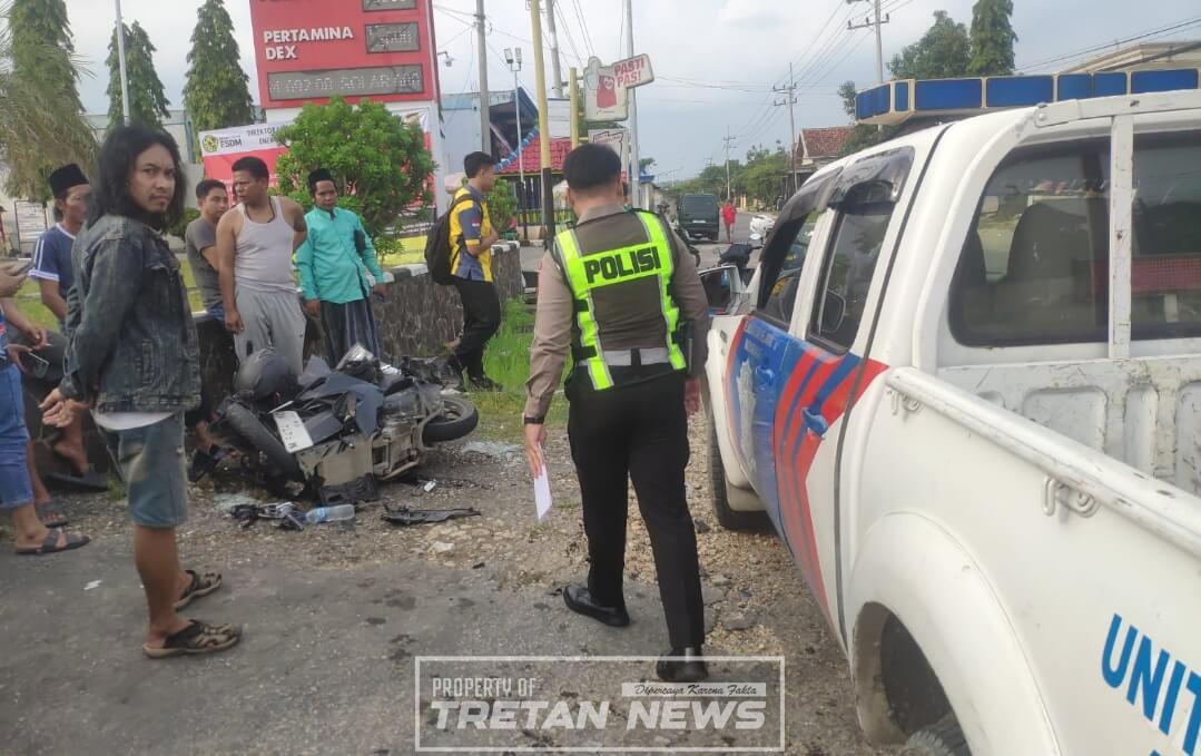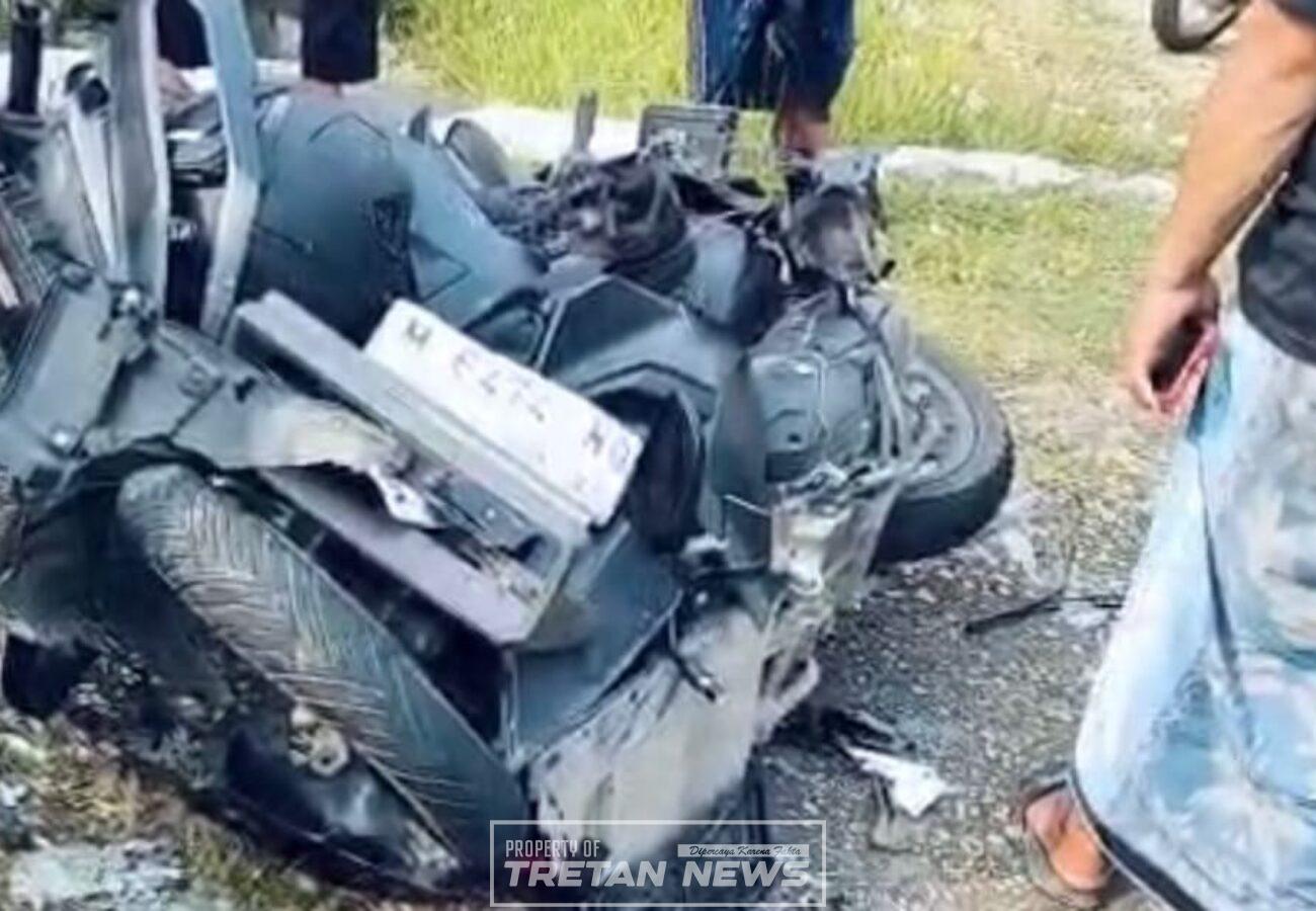Insiden tersebut melibatkan sepeda motor Honda Vario dan sebuah kendaraan pick up yang bertabrakan dari arah berlawanan.