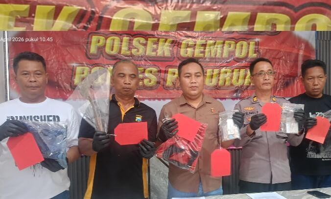 Wakapolsek Gempol AKP Slamet Pujiono dalam konferensi pers, Selasa (14/4), mengatakan penangkapan tersebut merupakan tindak lanjut dari laporan polisi Nomor LP/B/07/IV/2026/SPKT/Polsek Gempol/Polres Pasuruan/Polda Jawa Timur.