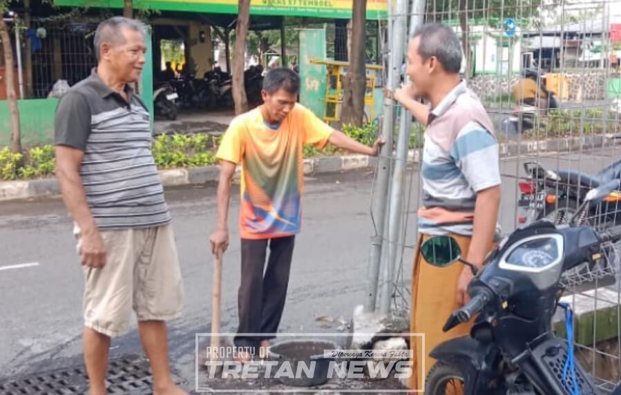 Warga RW 01 Rungkut Tengah Tambal Jalan Berlubang